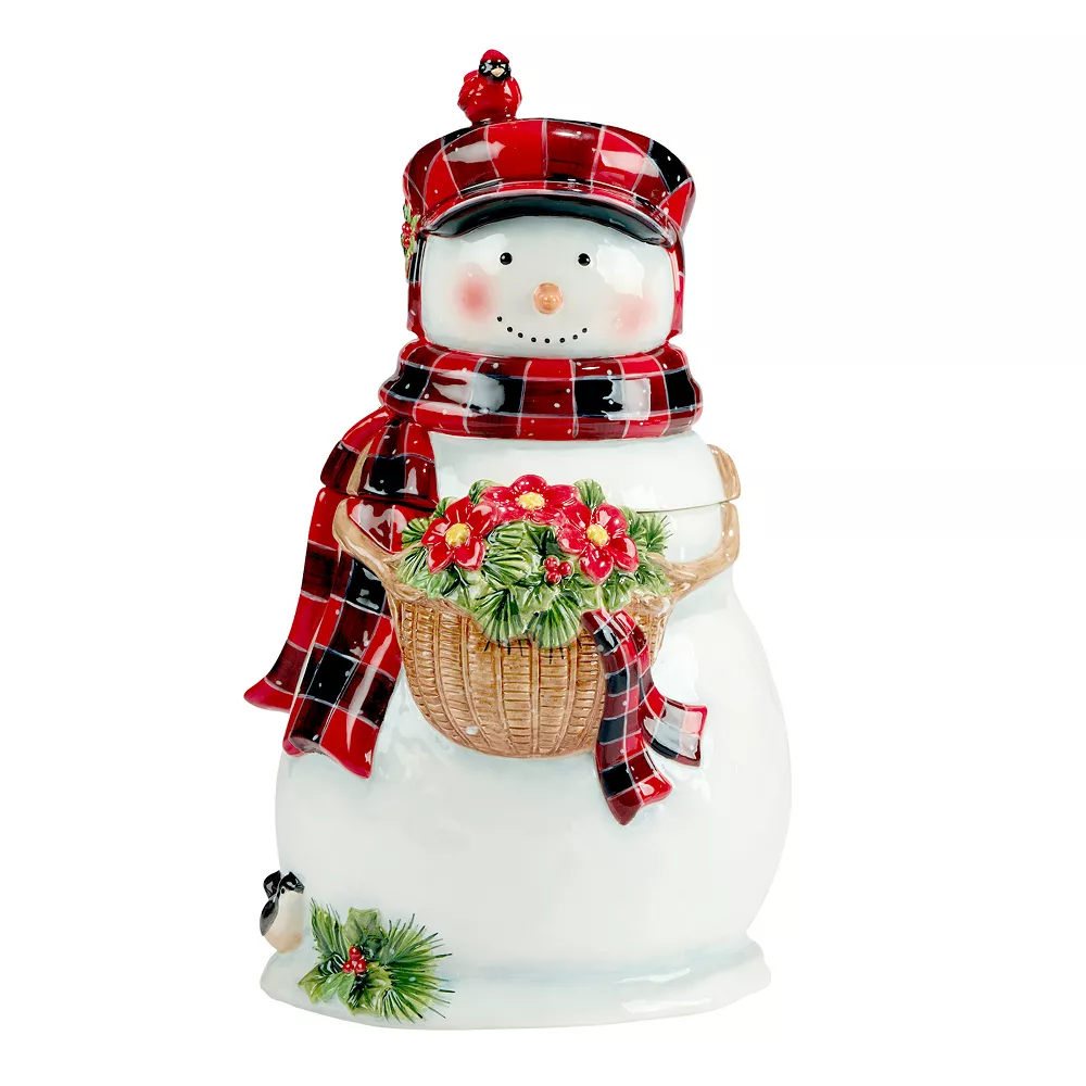 Complete your seasonal dining decor with this festive Certified International Christmas Lodge Snowman cookie jar.
