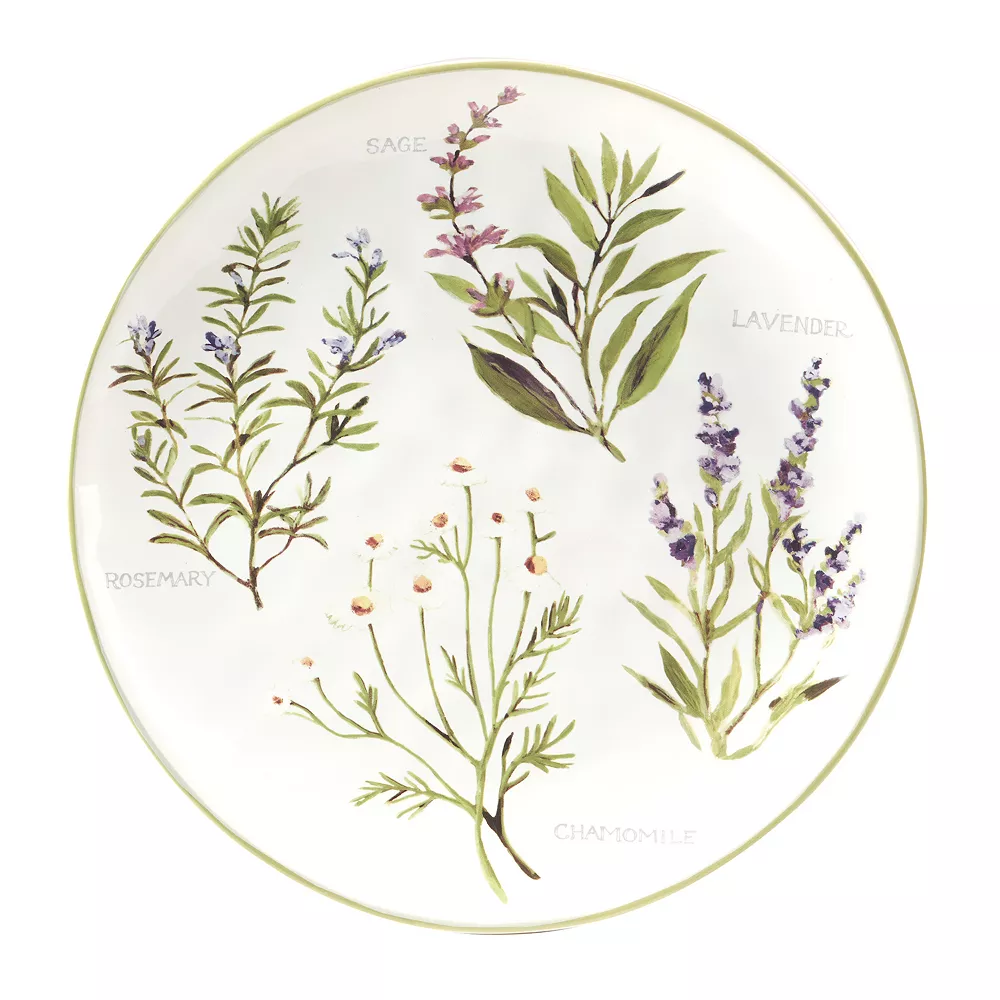 Lovely watercolor-inspired herbs decorate this Certified International Fresh Herbs dinner plate set, the perfect choice for any gardener’s kitchen.