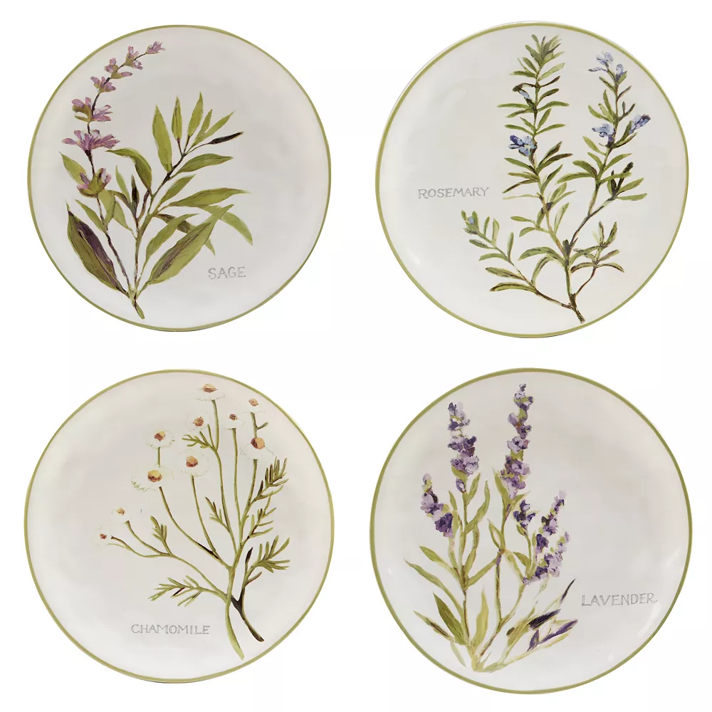 Lovely watercolor-inspired herbs decorate this Certified International Fresh Herbs salad plate set, the perfect choice for any gardener’s kitchen.