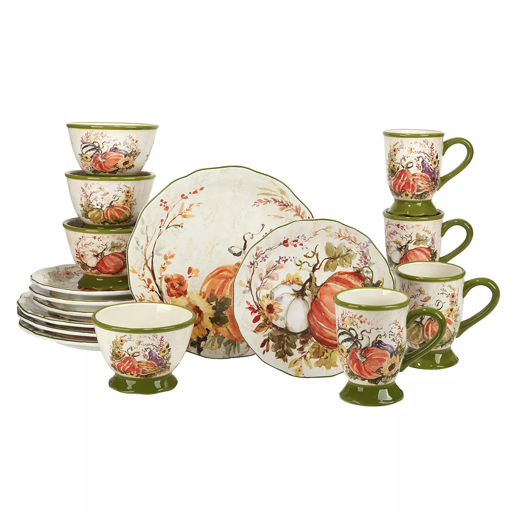 Create a beautiful tablescape for a Thanksgiving feast or fall gathering with this Certified International Harvest Morning dinnerware set.