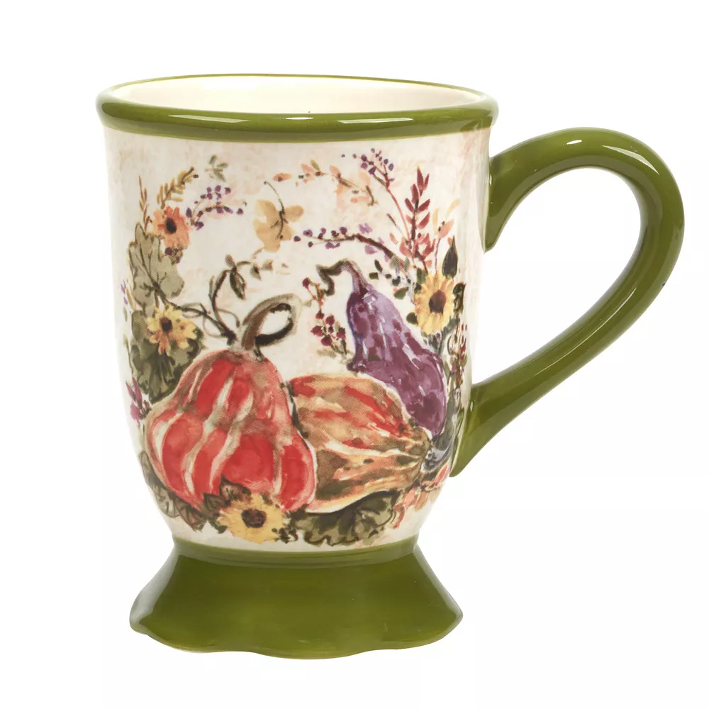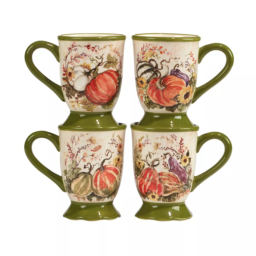 Create a beautiful tablescape for a Thanksgiving feast or fall gathering with this Certified International Harvest Morning four-piece mug set.