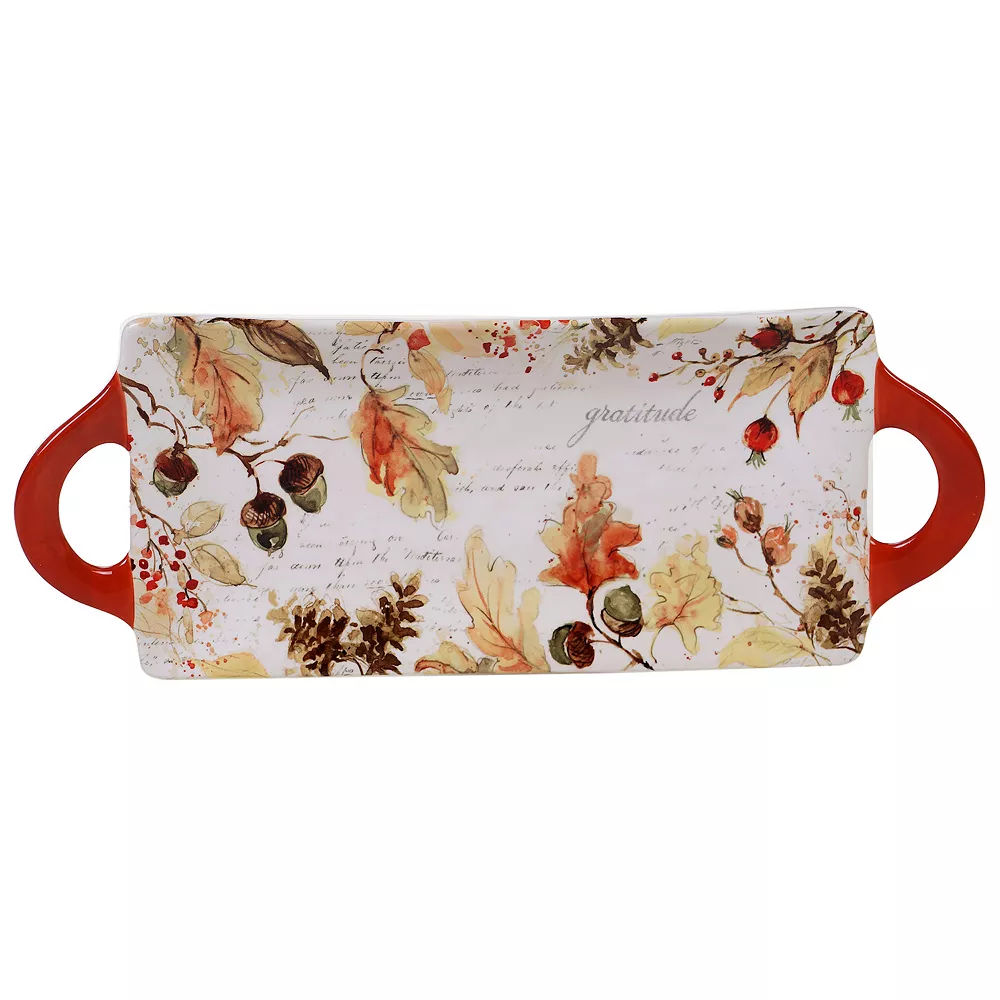 Pumpkins are the feature in Harvest Splash, a colorful mix and match collection of ceramic dinnerware and serveware from Certified International. Designed by Susan Winget, the many layers in this mix and match collection include watercolor pumpkins, solid color dinnerware, embossed serveware and 3D accessories like pumpkins, turkeys and leaves.