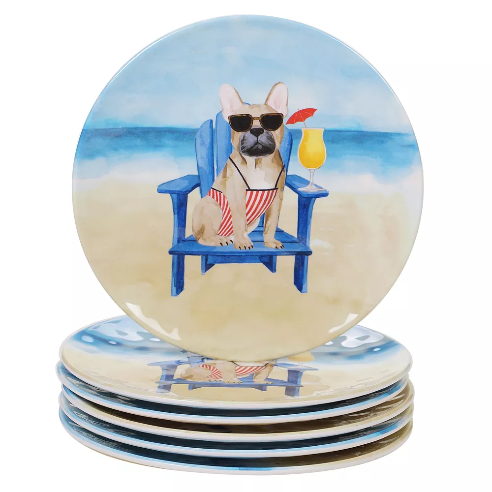 Whimsical scenes of your favorite dogs relaxing on the beach with cocktails add to this fun melamine dinnerware and serveware collection by Certified International.