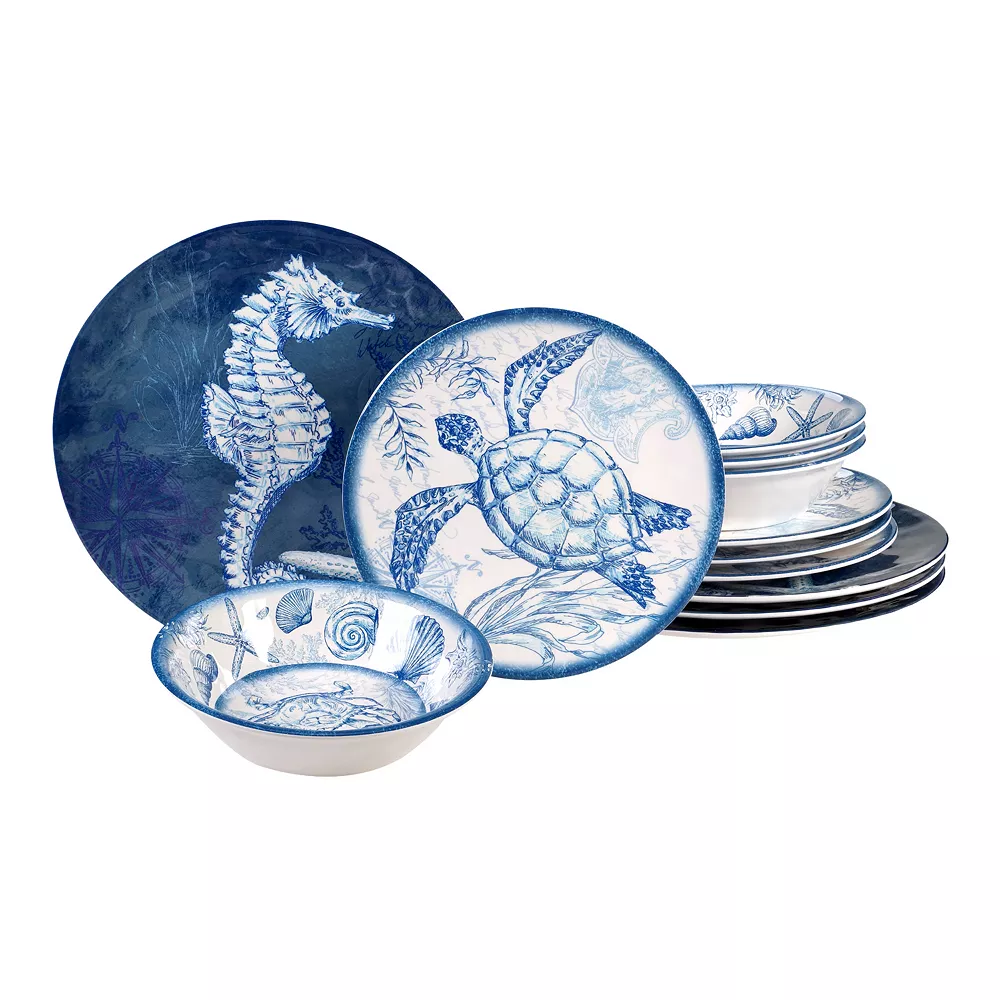 Nautical graphics and deep shades of blue give this Certified International Oceanic dinnerware set a distinct summertime vibe.