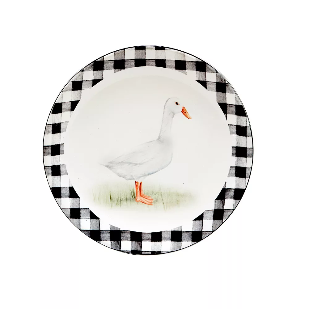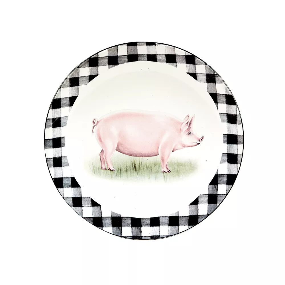Give your rustic dining decor a fresh, new look with this Certified International On The Farm salad plate set. A black and white checkered pattern and farm animal graphics create a classic farmhouse look.