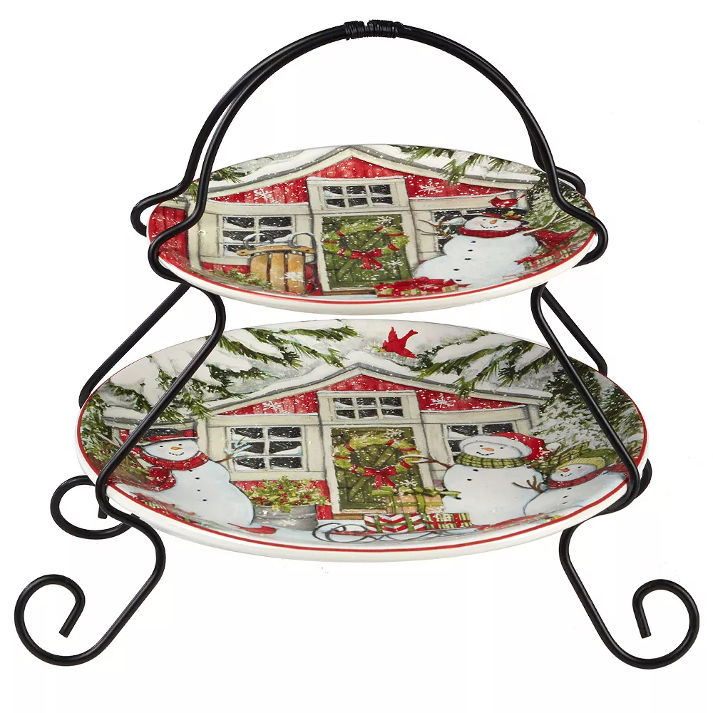 Create new holiday traditions when you set the table with this Certified International Snowman’s Farmhouse tiered server.